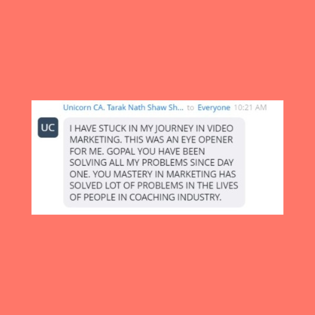 Gopal Krishnan’s “Binge Marketing System using WhatsApp Class Funnel’ for growing coaching businesses are phenomenal. He shows coaches how to build their leadership brands with a WhatsApp class and scale their coaching business to seven figures and beyond.